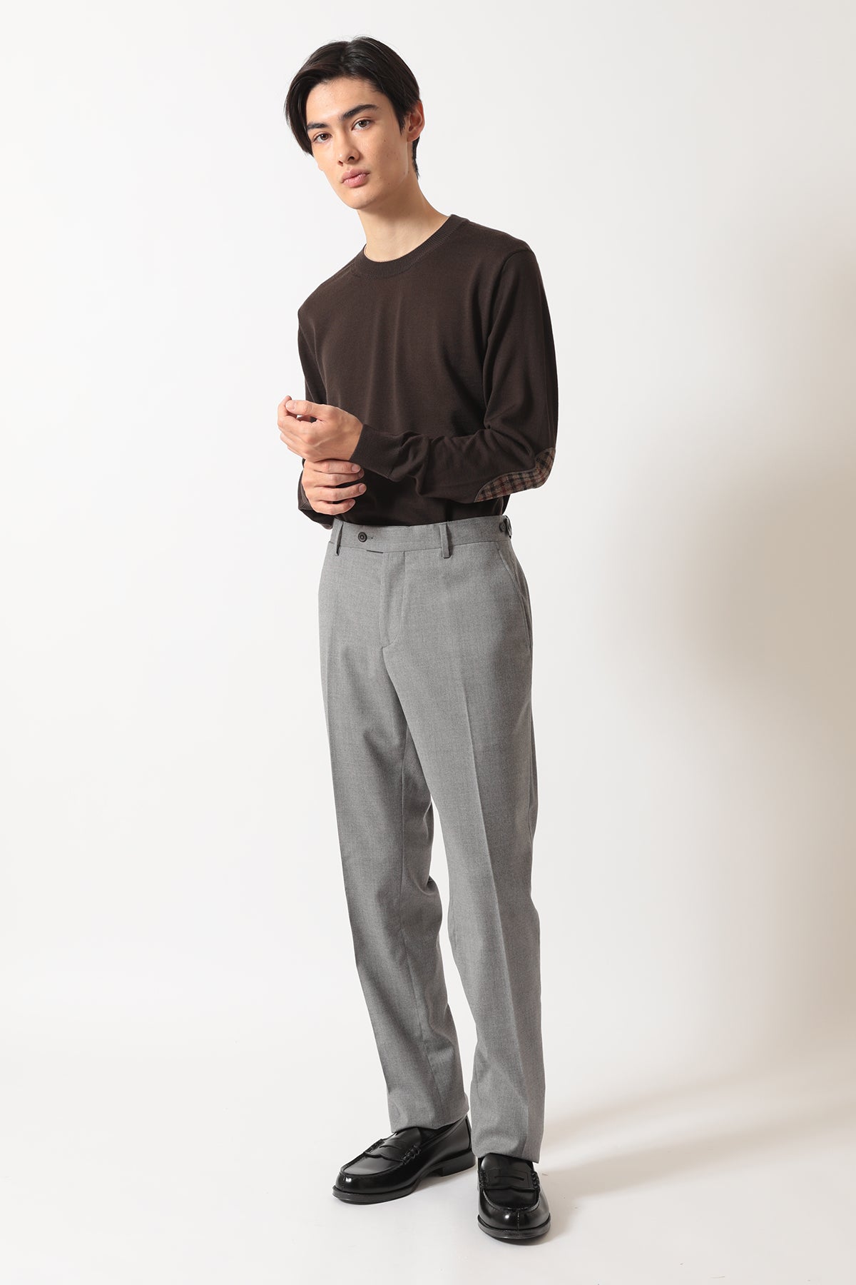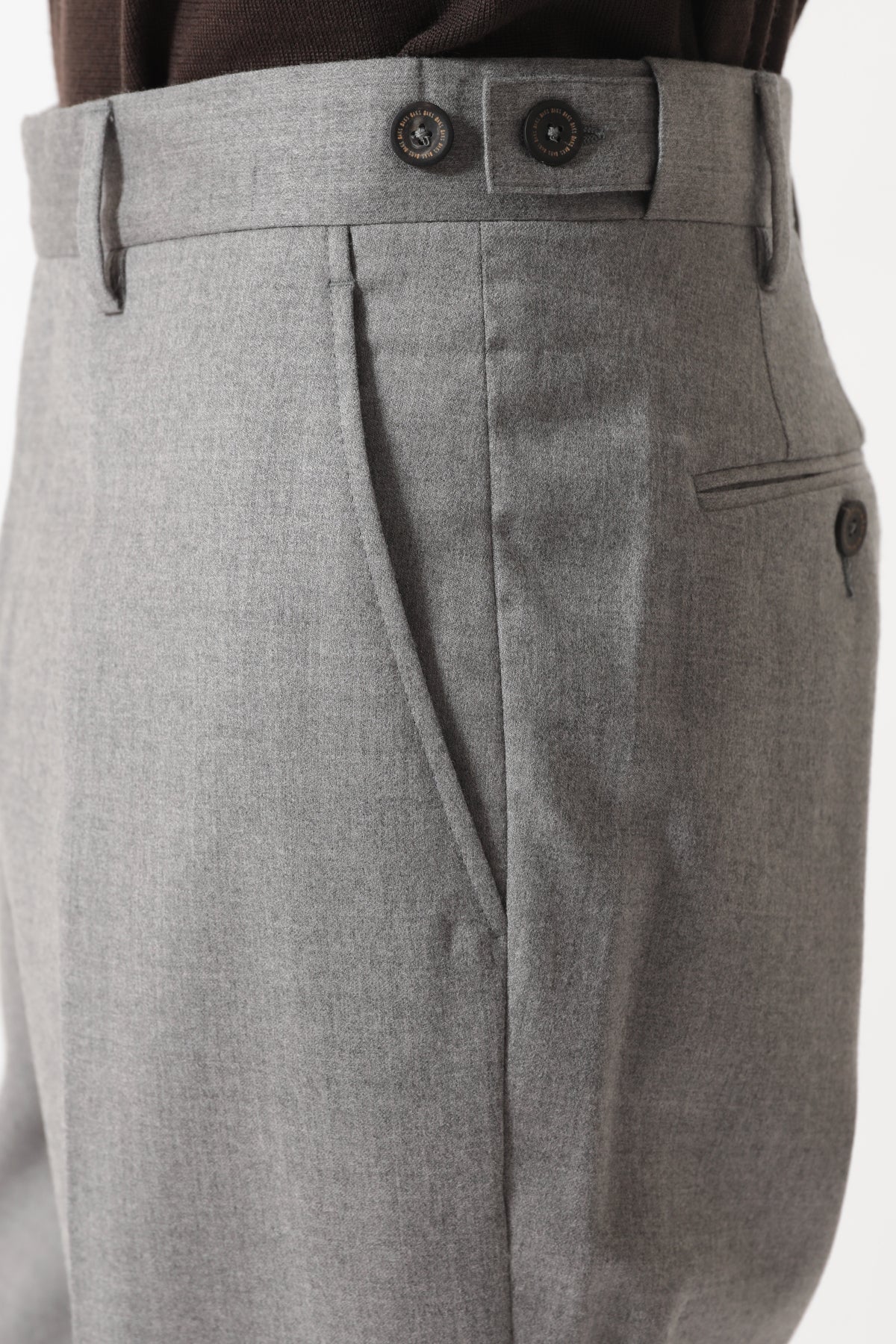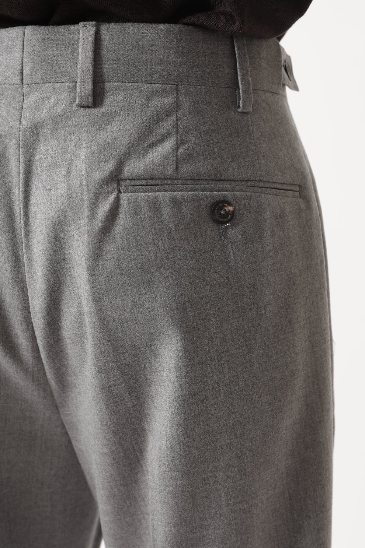 Tailored in Italy from our exclusive lightweight wool flannel by Rada, this classic flat front trouser features a regular rise and a slightly tapered leg.