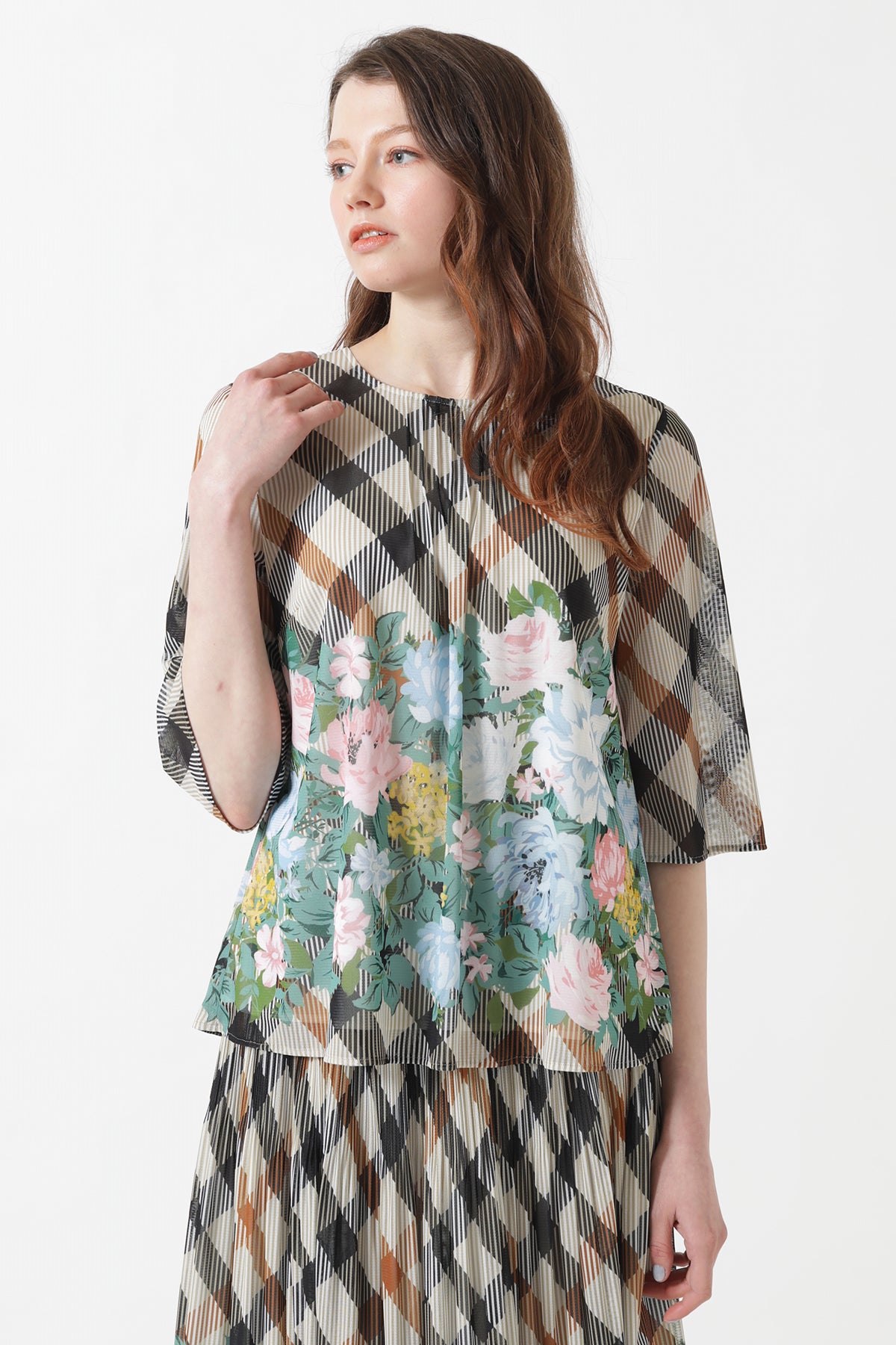 Add Floral in Check Print Scarf to the cart