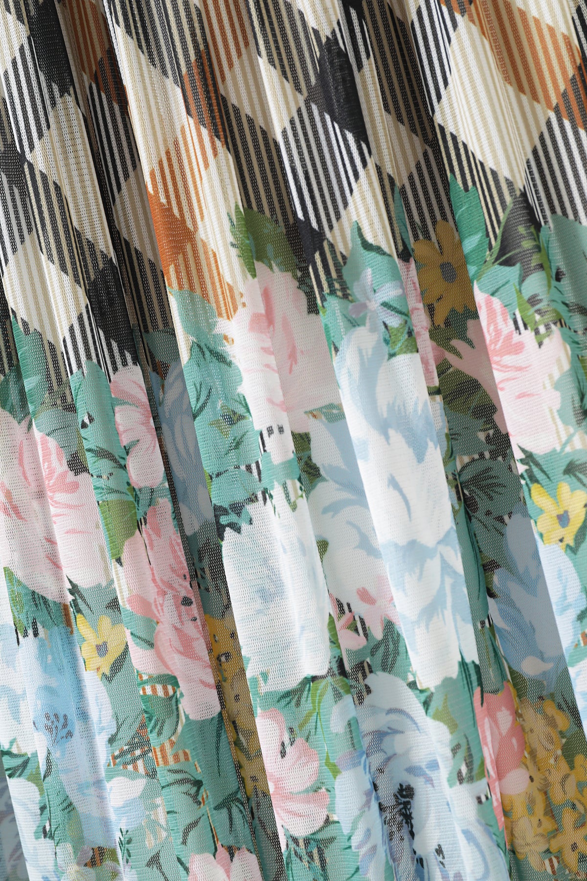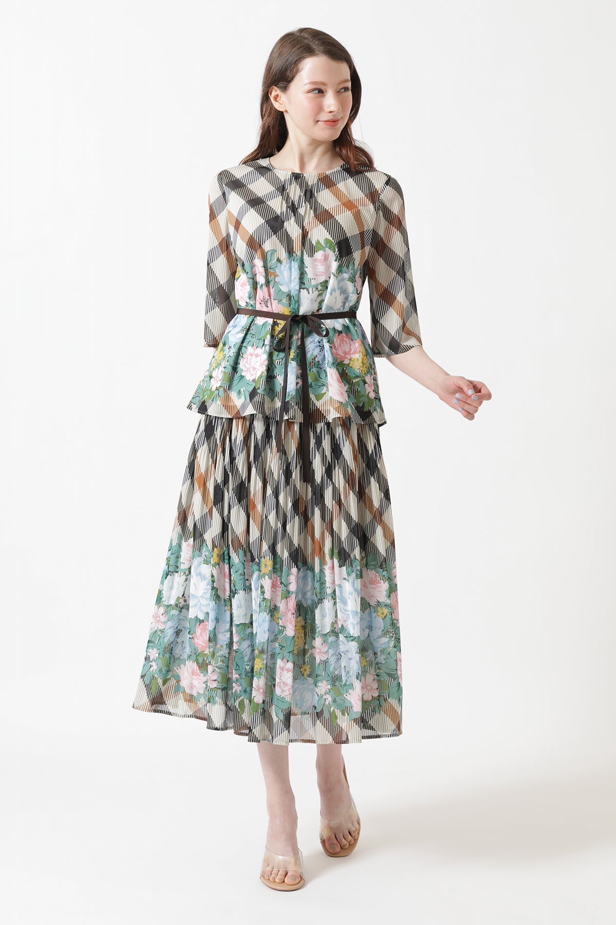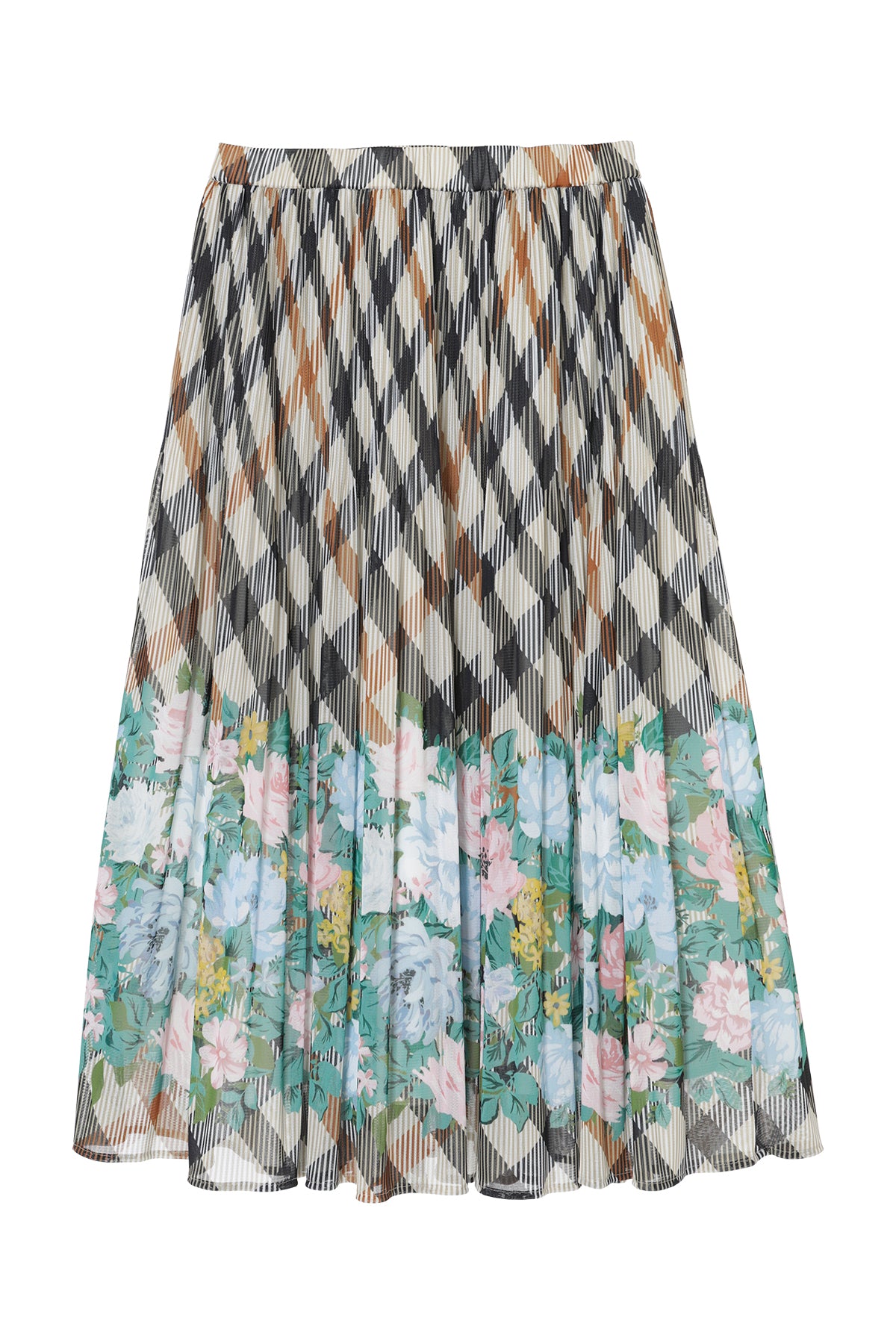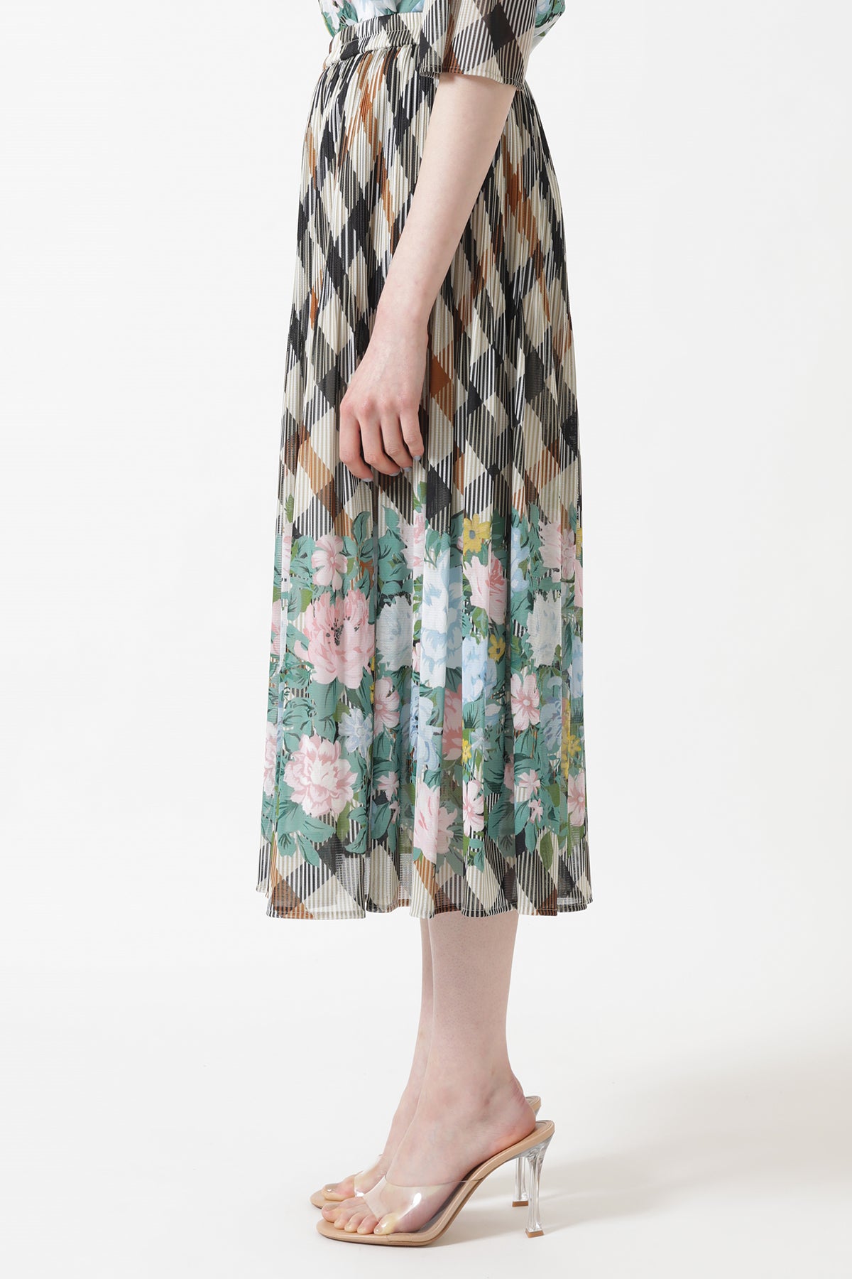 Floral on House Check Pleats Skirt